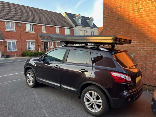 The rear-open roof tent weighs 62KG (without ladder, storage bars and fitting kit). Most cars have a 75KG limit so this should be easy to stay within as long as you store the ladder in the car. It's important to check your specific car's user manual to check your roof cargo weight limit.